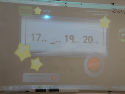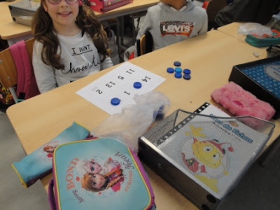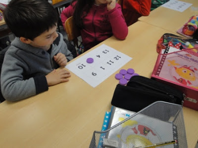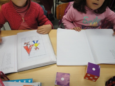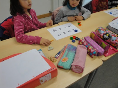 Mais uma aula de matemática muito animada. Desta vez trabalhámos a pares. No quadro iam aparecendo contas e sequências numéricas e nós tínhamos que descobrir se o resultado estava no nosso cartão. Ganhou o par que preencheu em primeiro lugar todos os números.