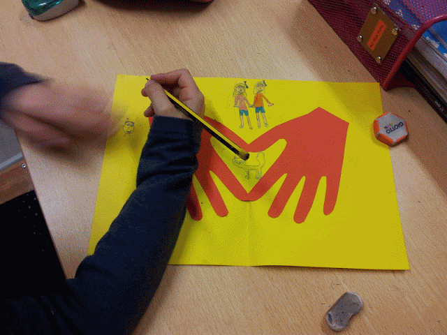 Fizemos um cartão especial em homenagem à nossa família que tanto amamos e que é o que de mais importante temos. Primeiro, a professora decalcou as nossas mãos de uma forma especial para ficar um coração no meio. Depois decorámos o cartão ao nosso gosto e oferecemos esta pequena lembrança à nossa família.